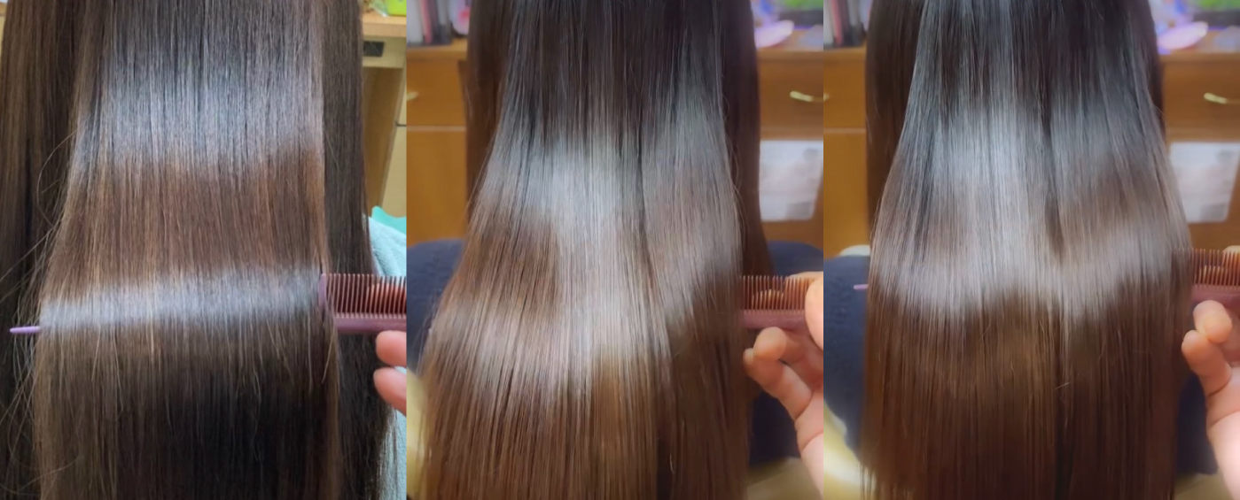どこもやっていない、やれない、質感UPトリートメント(エクリペトリートメント)は、サラサラ・ツヤツヤが1ヶ月半~2ヶ月続きます。